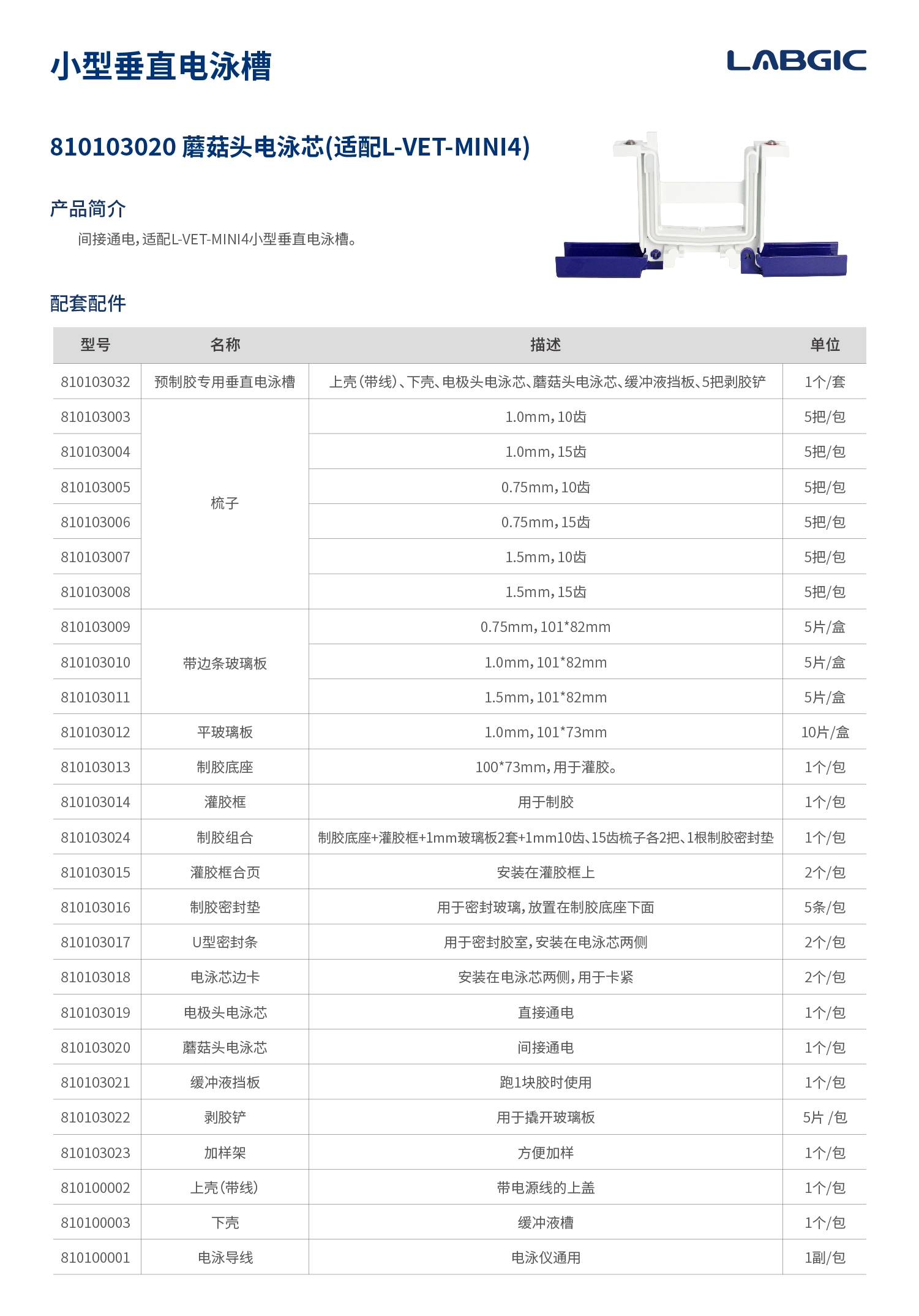 L-VET-MINI4小型垂直电泳槽配件。